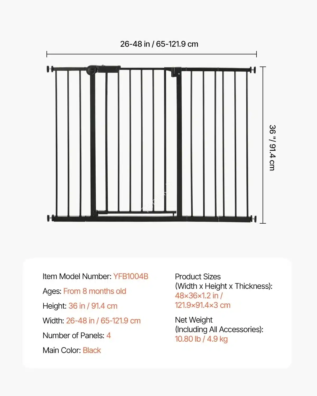 Šie aukštos kokybės sulankstomi šunų saugos vartai yra idealus sprendimas norint apsaugoti savo augintinį nuo pavojingų vietų ar tiesiog apriboti jo judėjimo erdvę. Su reguliuojamu pločiu nuo 65 iki 121,9 cm ir 914 mm aukščiu, šie vartai puikiai tinka įvairiems namų išmatavimams.