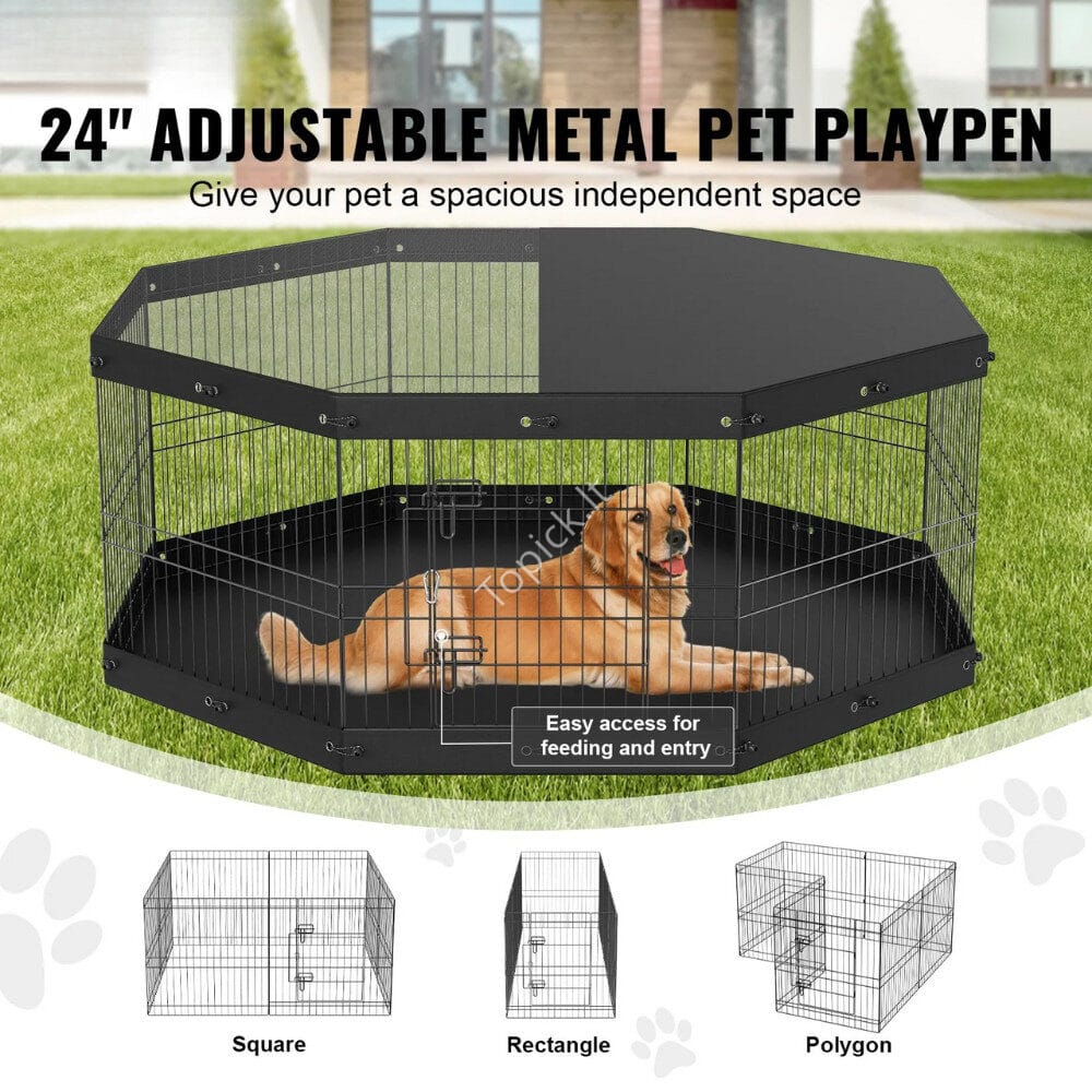 - Reguliuojamas 24 colių naminių gyvūnėlių maniežas, skirtas nepriklausomai erdvei: Šiame šunų bėgime yra 8 jungtys, kad būtų pakankamai vietos, todėl aptvarą galite paversti įvairiomis formomis, pavyzdžiui, stačiakampiais, kvadratais ar aštuonkampiais, atsižvelgiant į tai, kiek vietos turite. Idealiai tinka augintinių dresavimui, kelionėms ir kaip saugi vieta mamoms po gimdymo.
