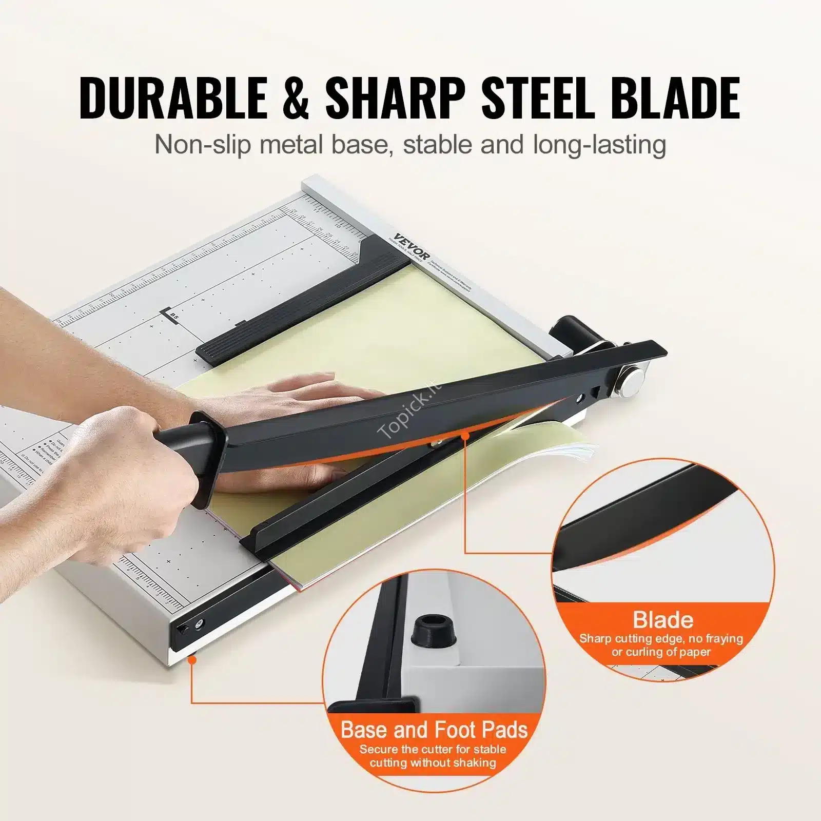 • Maksimalus Saugumas: Turi specialią apsauginę juostą/bėgelį ir ašmenų užraktą, kurie užtikrina, kad pjaustyklė netyčia neatsidarytų ar neįvyktų nelaimė. Tavo pirštai bus saugūs!