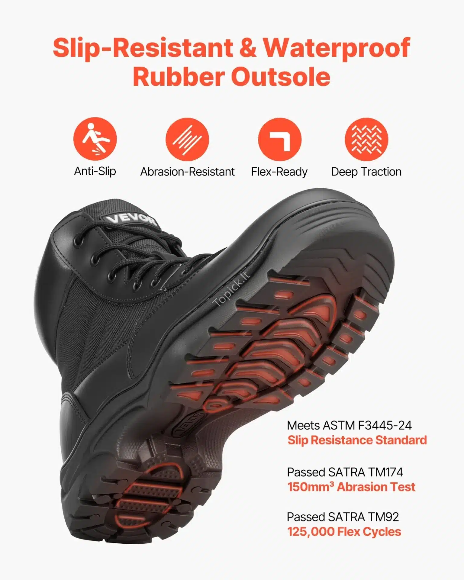 - Neslystantis padas: Guminis padas su gilintu raštu užtikrina puikų sukibimą su įvairiais paviršiais, todėl galite jaustis saugiai bet kokiomis sąlygomis.