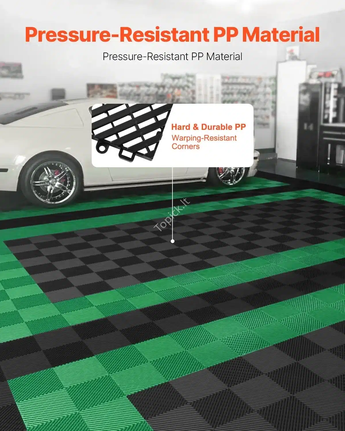 Medžiaga: aukštos kokybės polipropilenas (PP), atsparus UV spinduliams, alyvoms ir intensyviam naudojimui.