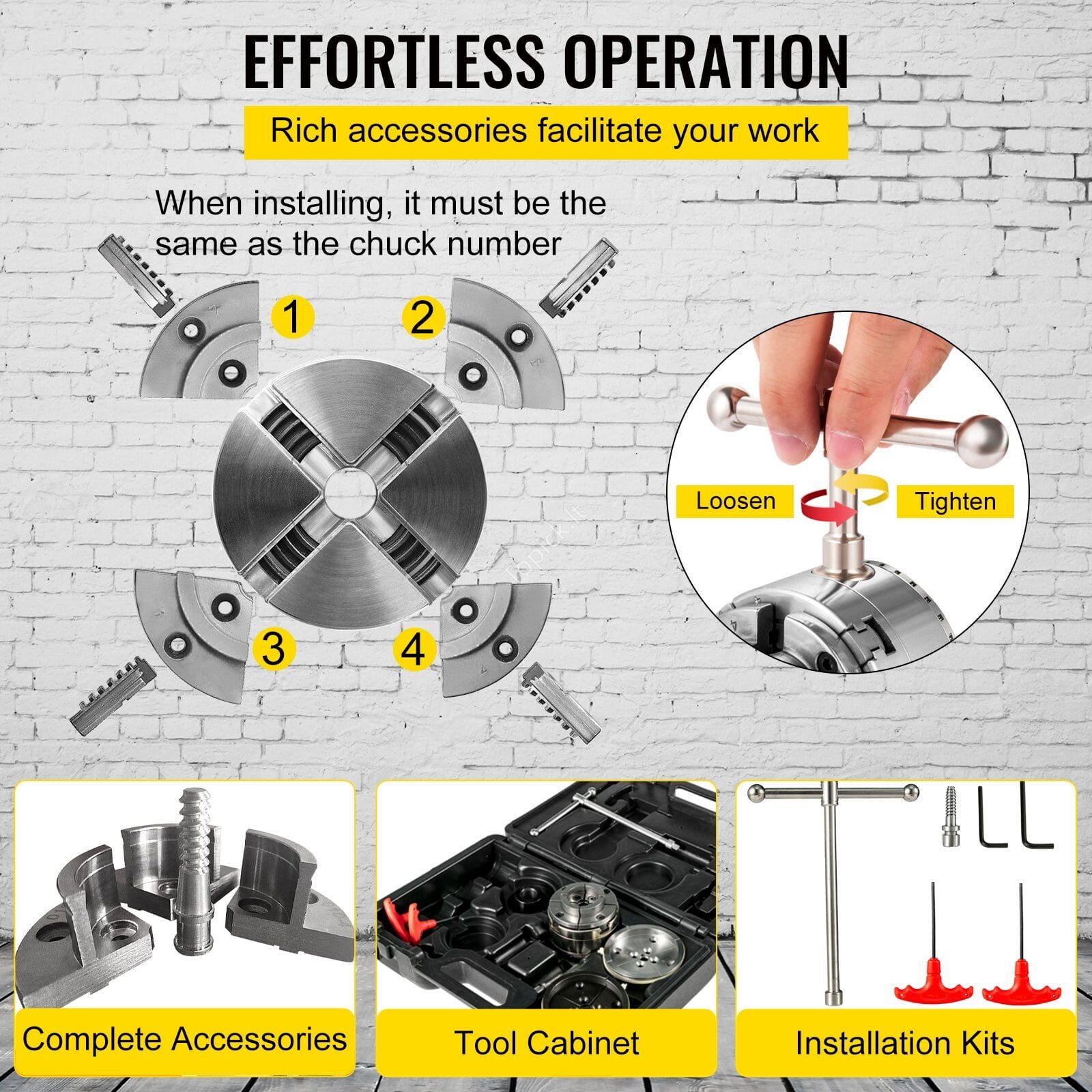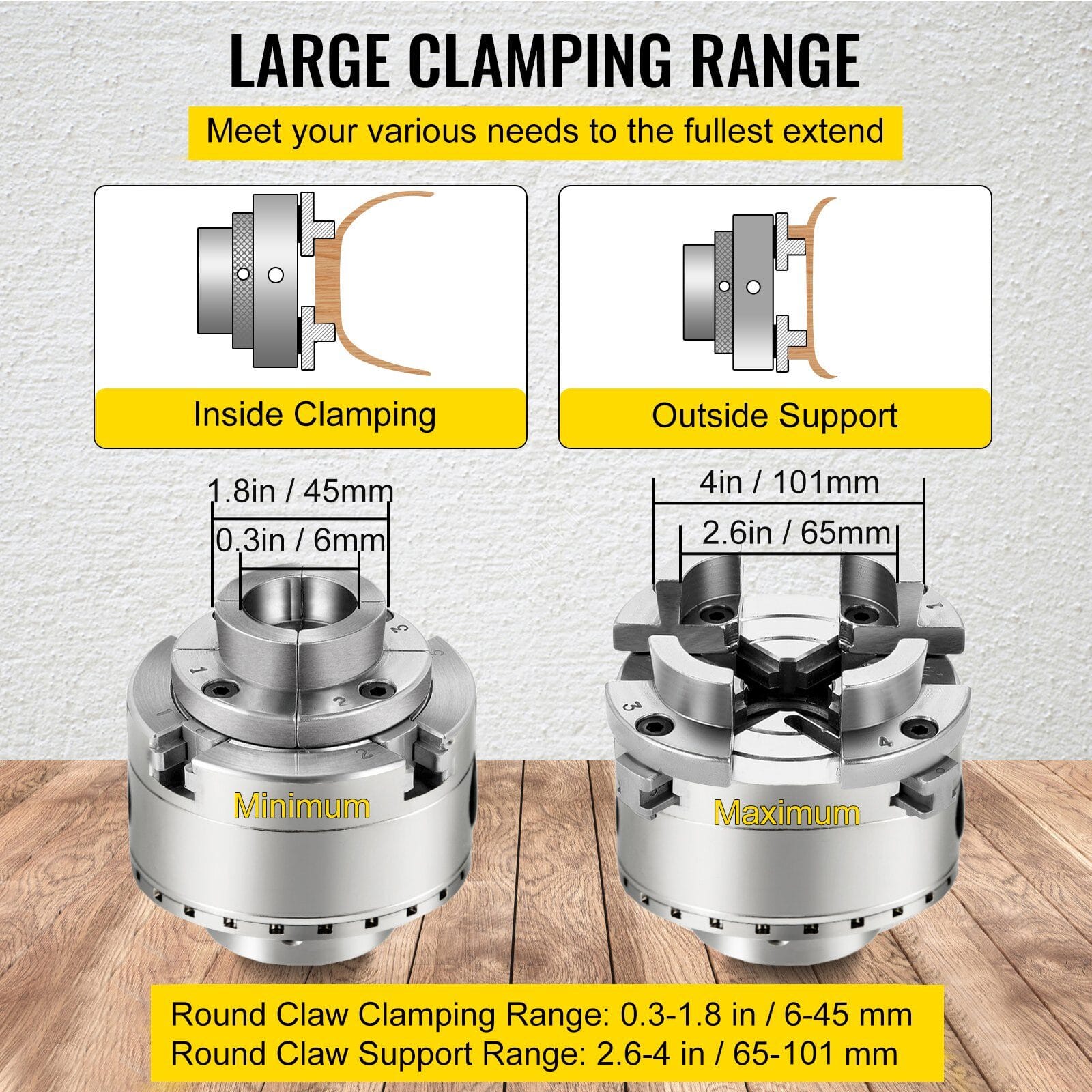 🎯 Aukštos kokybės 100 mm griebtuvė – idealus sprendimas metalo ir medienos apdirbimui ant midi arba mažų tekinimo staklių. Pilnai savicentruojantis mekanizmas užtikrina greitą ir tikslų ruošinių fiksavimą bei centravimą.
