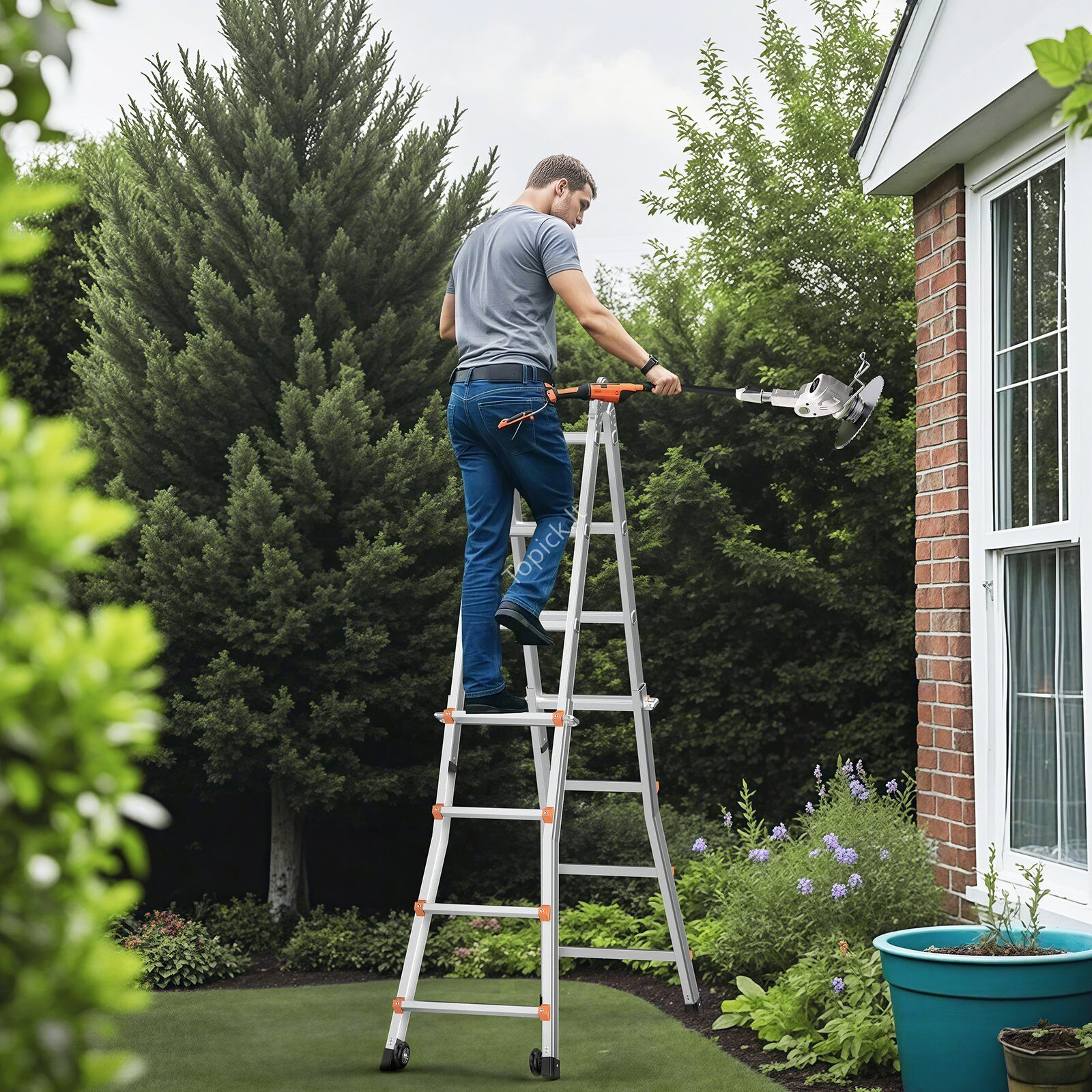 - Tvirtas ir ilgaamžis: Pagamintos iš didelio stiprumo aliuminio lydinio, šios rėminės kopėčios sukurtos taip, kad tarnautų ilgai, net ir naudojamos dideliame aukštyje, nesilenkdamos ir nesulūždamos. Papildomam saugumui dugnas aprūpintas neslystančiomis trinkelėmis.