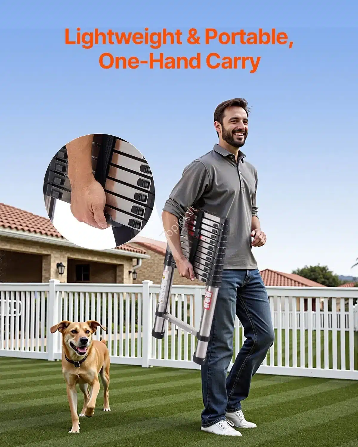🚀 Lengvas naudojimas – teleskopinis mechanizmas leidžia greitai išskleisti ir sulankstyti kopėčias be didelių pastangų.