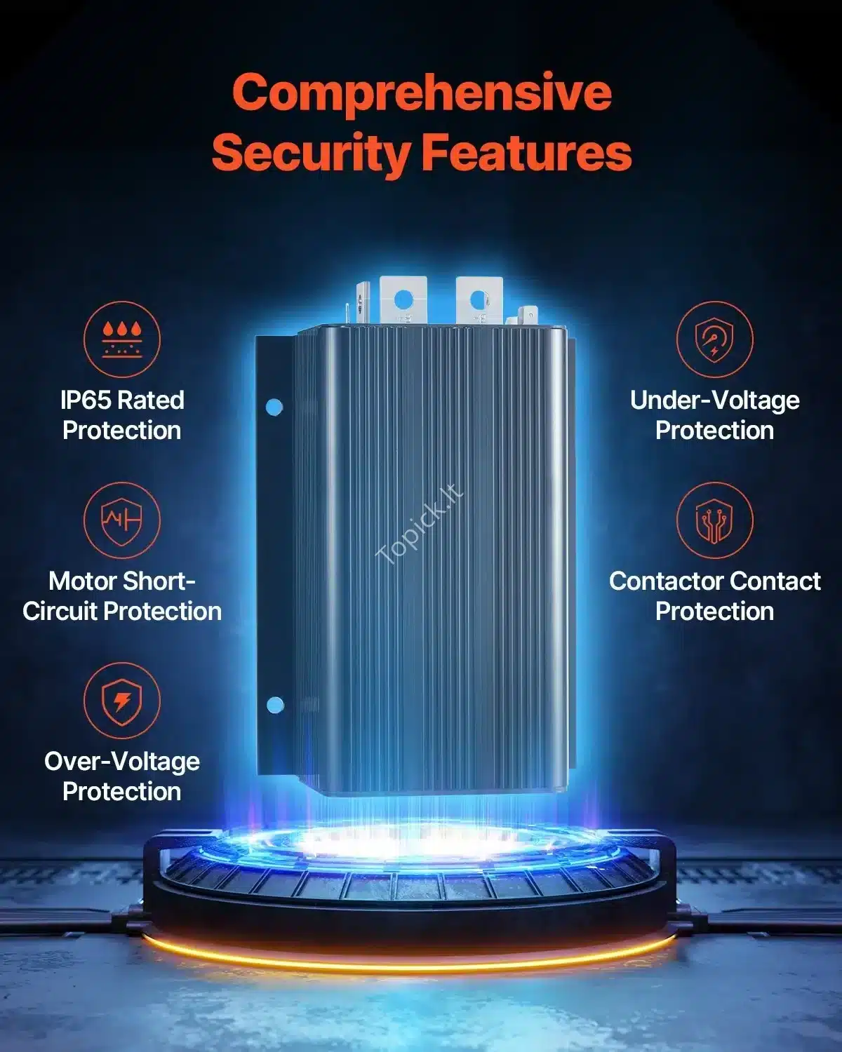 • Milžiniškas Sukimo Momentas: 500A srovės riba yra žymus patobulinimas, lyginant su standartiniais valdikliais. Tai reiškia, kad tavo vežimėlis turės daugiau jėgos pajudėti iš vietos, įveikti stačias įkalnes ir vežti sunkesnį krovinį.