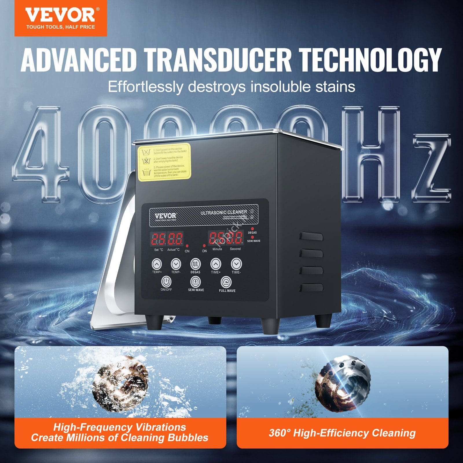- Pažangi keitiklio technologija: efektyvus keitiklis kartu su šildymo galia nuo 0 iki 80 °C iš karto ištirpina įsisenėjusius riebalus. 360° tikslumo instrumentų valymas be vargo pašalina sunkiai įveikiamus nešvarumus ir alyvą nepažeidžiant objektų. Nesvarbu, ar valant kasdienius daiktus, ar atliekant profesionalius valymo reikalavimus, ultragarsinis valymo įrenginys gali būti naudojamas be jokių dvejonių.