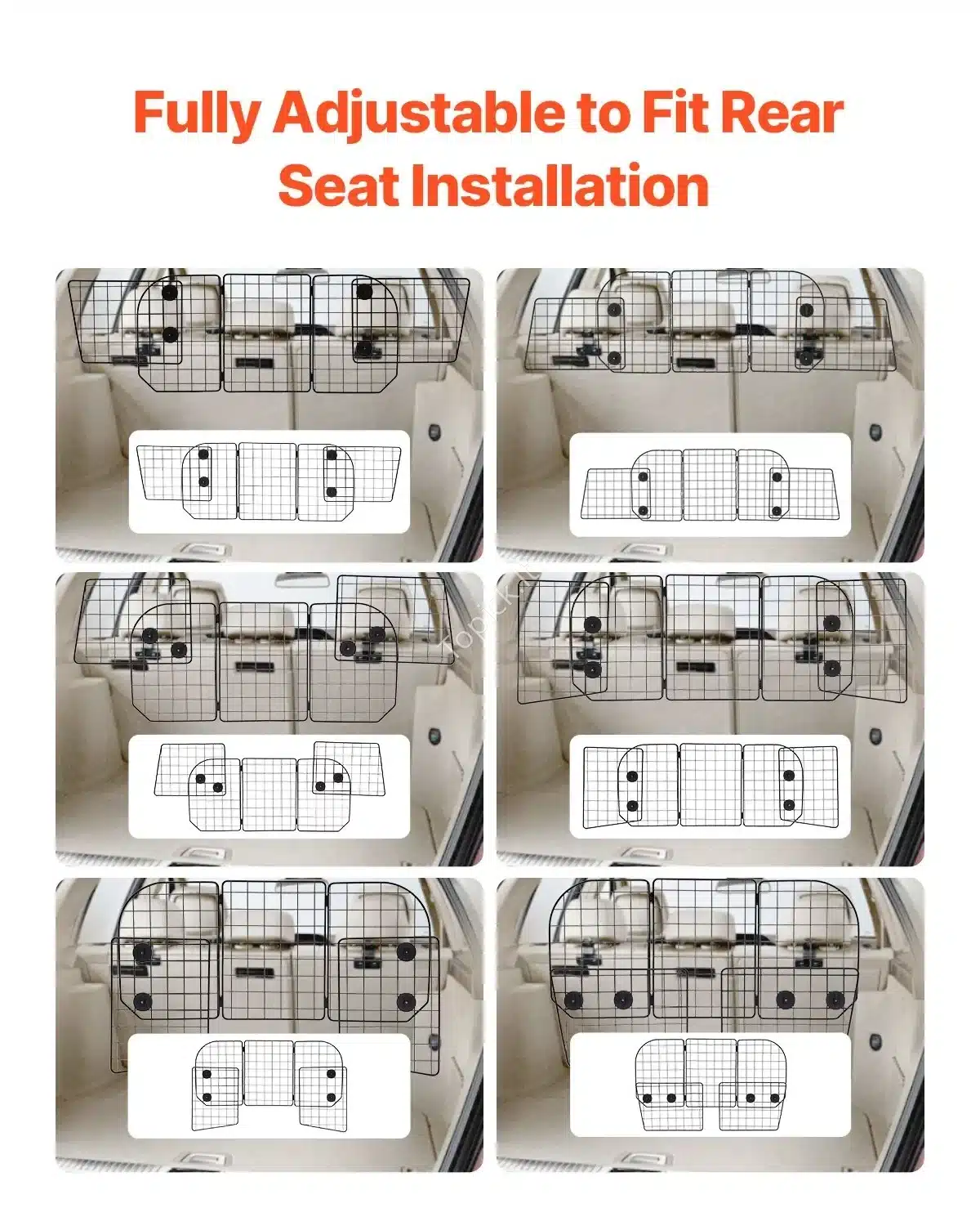 - Saugi kelionė: užkerta kelią augintiniams šokinėti į priekinę sėdynę, sumažina išsiblaškymą ir užtikrina visų keleivių saugumą.