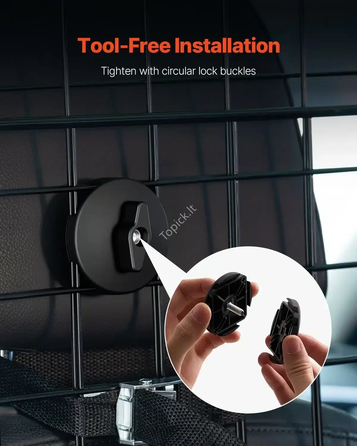 - Saugumas kelyje: efektyviai atskiria augintinį nuo vairuotojo ir keleivių, sumažina blaškymąsi ir užtikrina saugesnę kelionę.