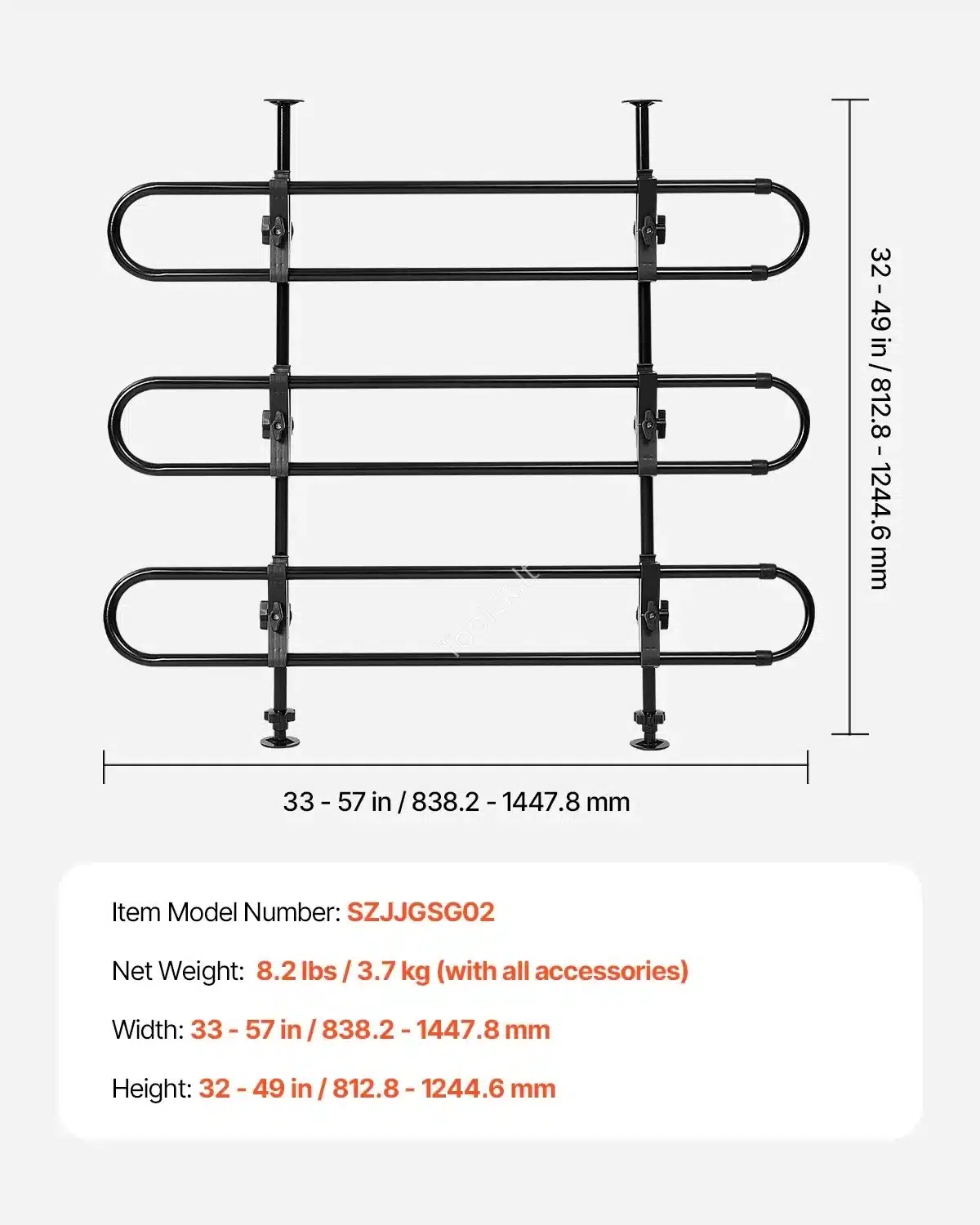 - Lengvai pritaikomos: reguliuojamas plotis nuo 838 mm iki 1448 mm ir aukštis nuo 812 mm iki 1245 mm, todėl grotelės puikiai tinka įvairiems automobilių modeliams.