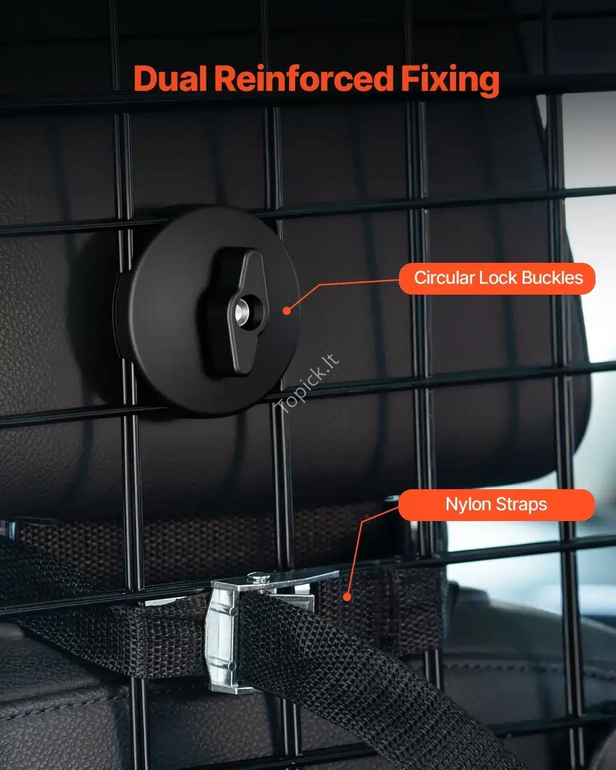 - Saugumas kelyje: efektyviai atskiria augintinį nuo vairuotojo ir keleivių, sumažina blaškymąsi ir užtikrina saugesnę kelionę.