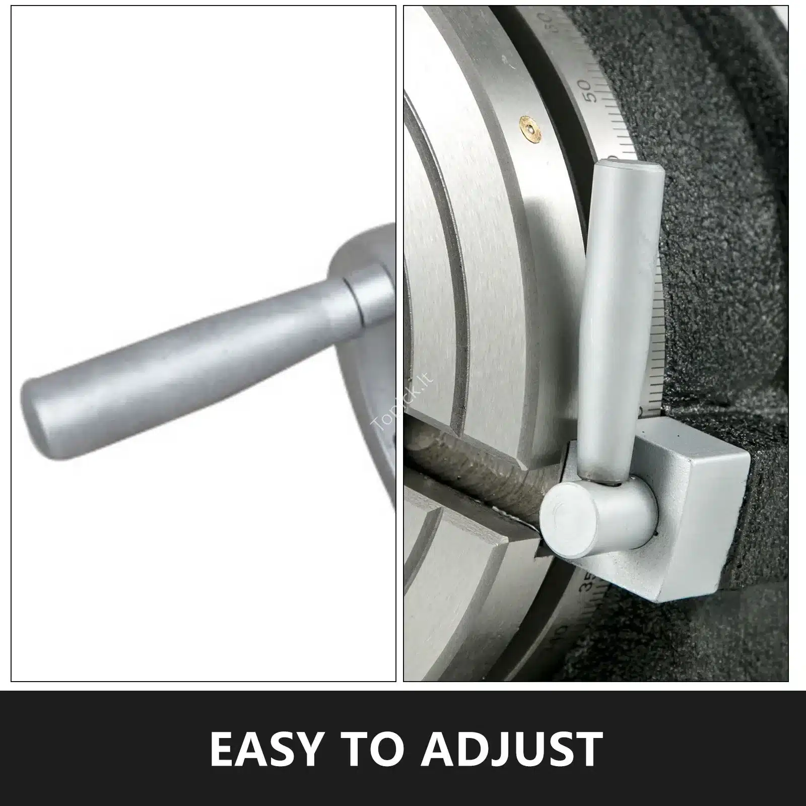 - 🎯 Fenomenalus Tikslumas: Ratas padalintas į 360 laipsnių, o minimali skalės padala yra kalibruota iki 10 sekundžių! Su tokiu tikslumu gali būti tikras dėl idealiai atlikto darbo.