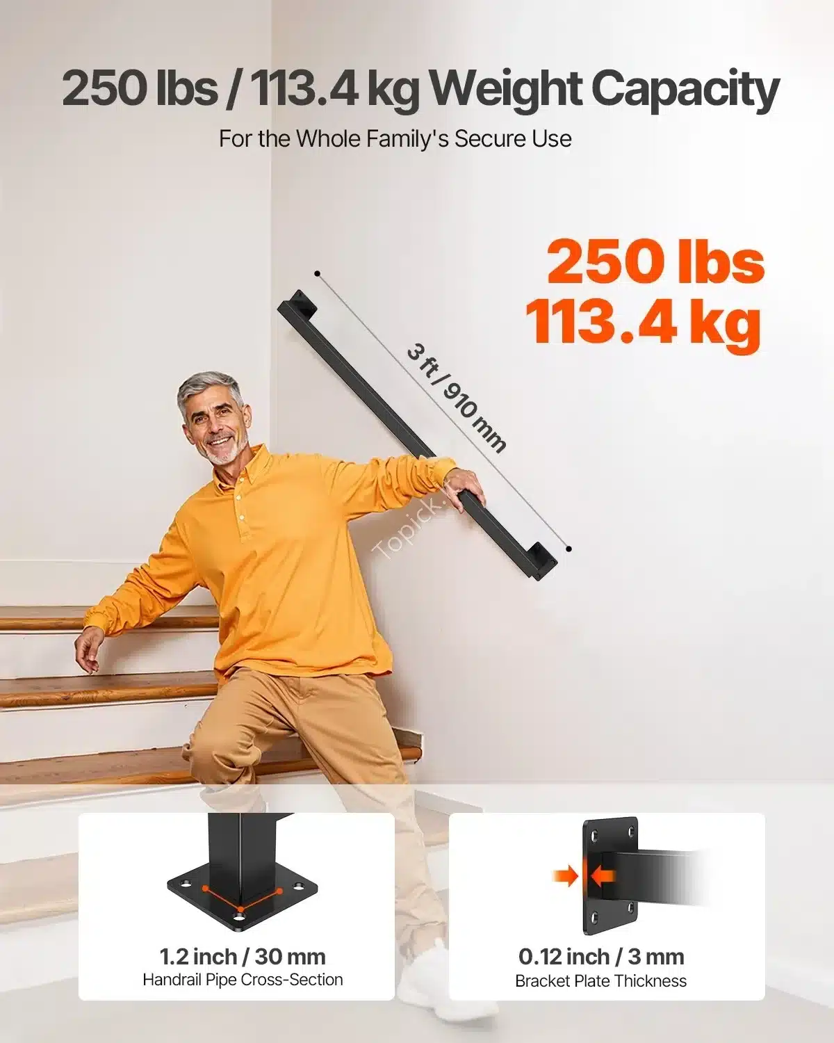 • Saugumas ir komfortas: Turėklas turi lygų, neslystantį paviršių, užtikrinantį patogų ir saugų suėmimą. Specialiai suprojektuoti kraštai be aštrių briaunų garantuoja, kad rankos bus saugios.
