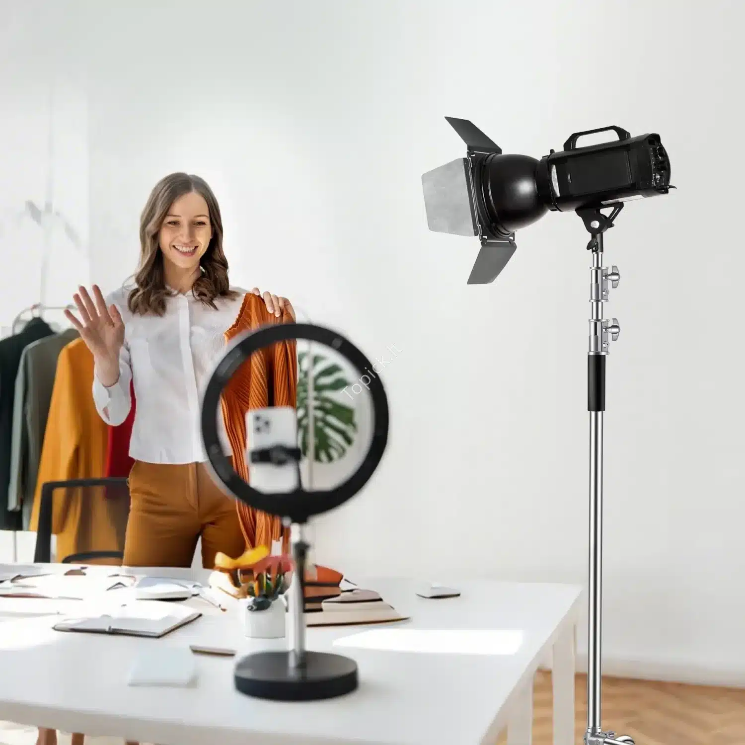 - Platus pritaikymas: Tinka įvairiems foto įrenginiams, tokiems kaip blykstės, softbox’ai ir video reflektoriai.