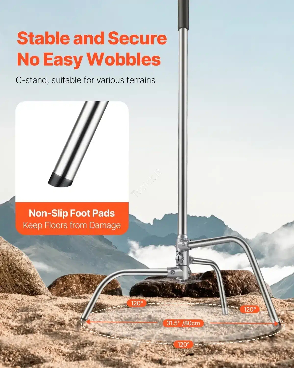 - Stabilumas: Trys reguliuojamos kojelės ir neslystančios guminės kojelės užtikrina tvirtą stovėjimą ant įvairių paviršių.