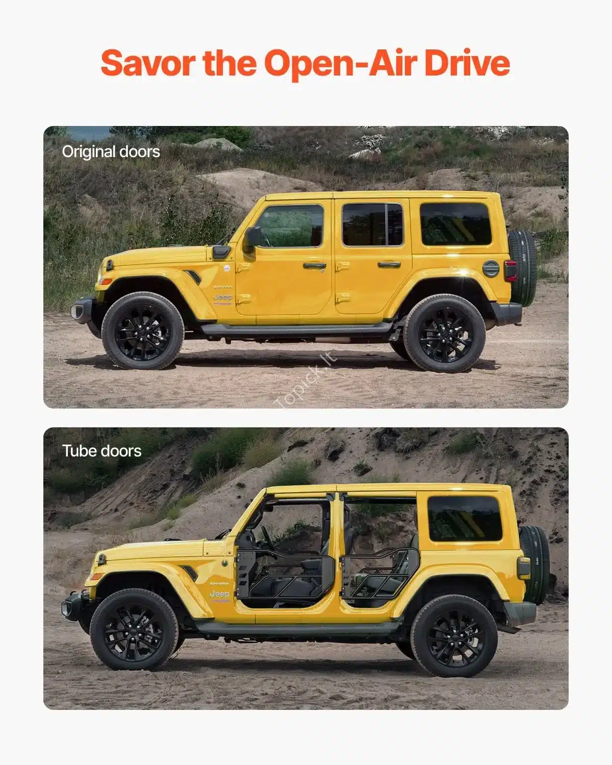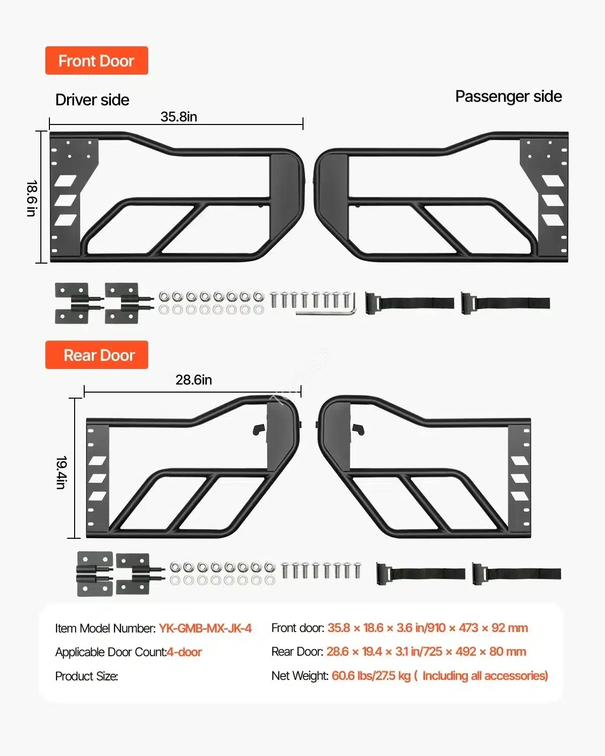Ieškote patobulintų, atvirų durelių savo džipui? Šis vamzdinių durelių rinkinys yra puikus pasirinkimas! Sukurtos specialiai „Jeep Wrangler JK“ modeliams, jos užtikrina geresnį matomumą ir oro cirkuliaciją, leidžiant mėgautis bekelės nuotykiais. 🏞️