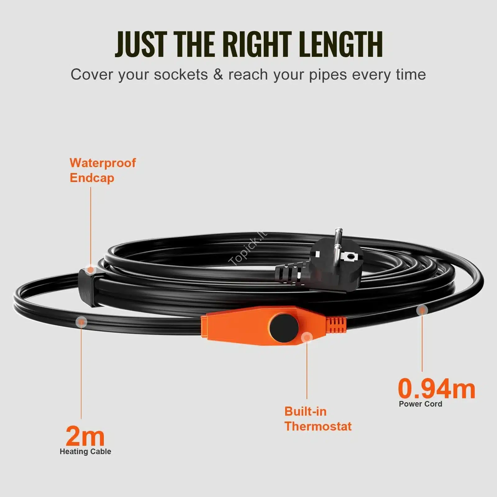 🔧 Lengvas montavimas: komplekte yra visi reikalingi priedai, leidžiantys lengvai ir greitai įrengti kabelį tiek tiesiai, tiek spirale aplink vamzdį.