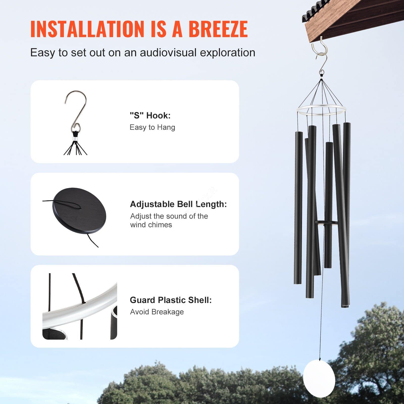 • Išskirtinės kokybės savybės: Pagaminti iš aliuminio ir anoduoti į bronzą, lauko vėjo varpeliai gali atlaikyti lauko elementus. Tvirtas nailoninis laidas, pastorintos vamzdžio sienelės ir S formos kabliukas užtikrina puikų patvarumą ir ilgalaikį naudojimą.