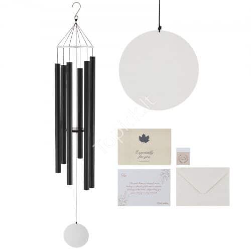 • 66 colių / 1677 mm lauko vėjo varpelis: mūsų bronzinis metalinis vėjo varpelis pagamintas iš 6 aliuminio vamzdžių, ilgiausias vamzdis yra 36,3 colio / 92,2 cm ilgio ir 1,49 colio / 3,8 cm skersmens. Patvarus nailoninis laidas ir didelio tankio plaktukas sukuria sodrų, melodingą garsą. Pristatymą sudaro atvirukas, sveikinimo atvirukas ir vokas.