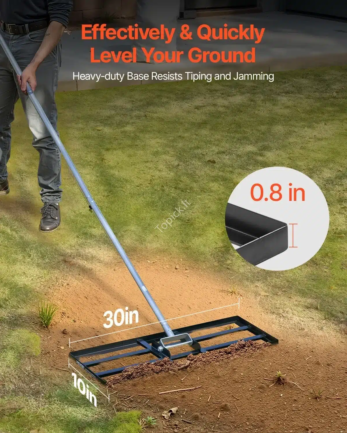 Šis tvirtas ir patogus vejos lygintuvas yra puikus įrankis, norint sukurti nepriekaištingai lygų vejos paviršių. 🌱 Jo pagalba galite lengvai išlyginti dirvožemį, smėlį, kompostą ar samanas, taupydami savo laiką ir pastangas. Tinka naudoti soduose, ūkiuose, dideliuose parkuose ir net golfo aikštynuose.