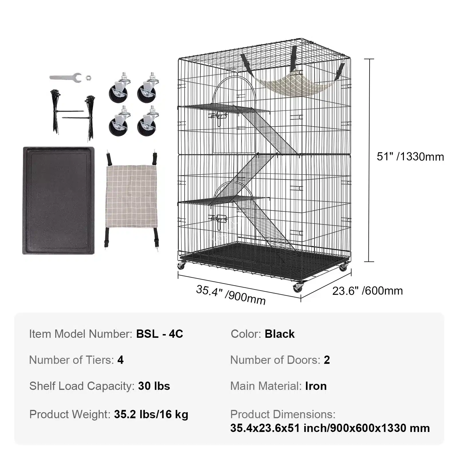 - Matmenys: 900 mm (plotis) × 600 mm (gylis) × 1330 mm (aukštis)