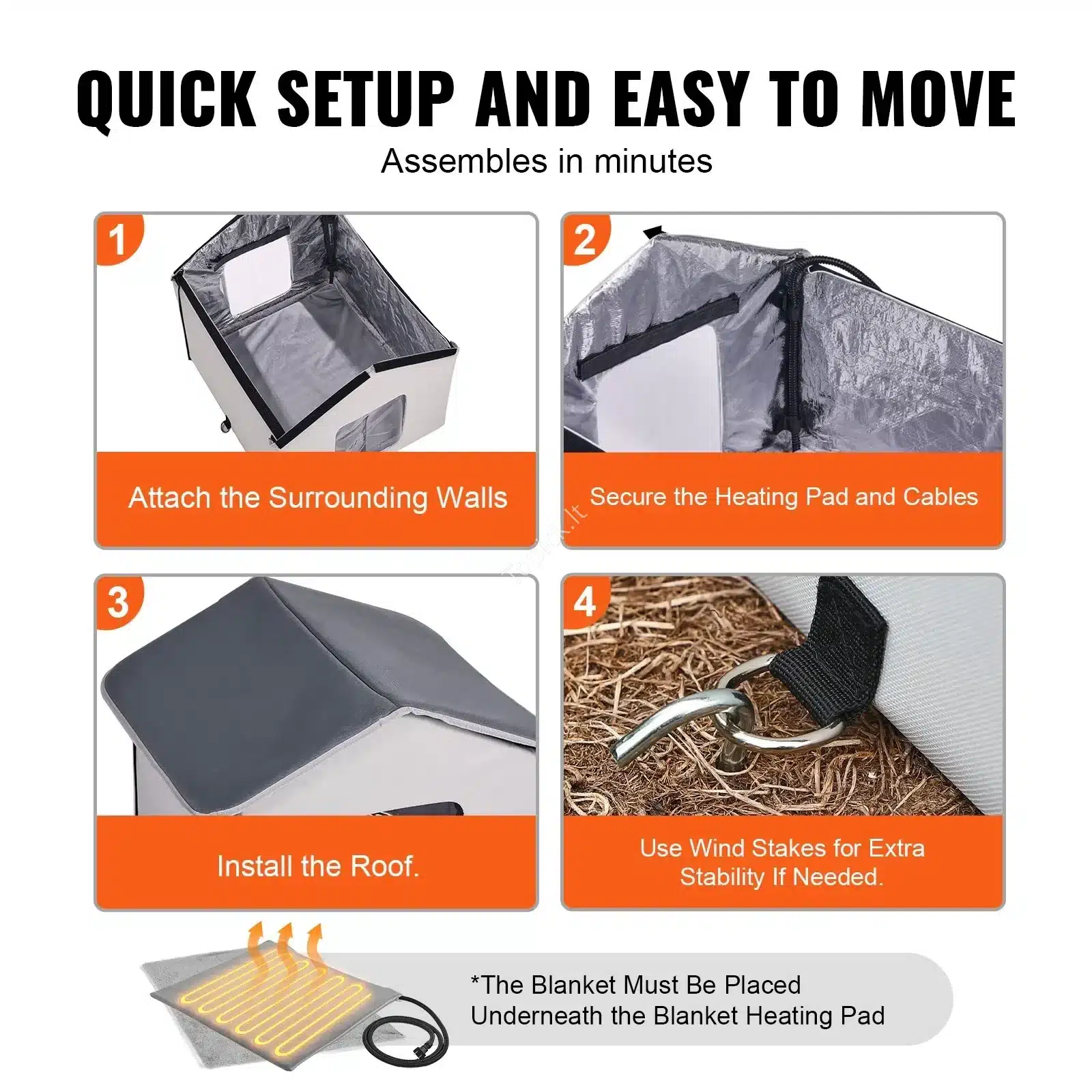 ✔️ Viduje laikomiems gyvūnams, kuriems reikia ramių, šiltų vietų