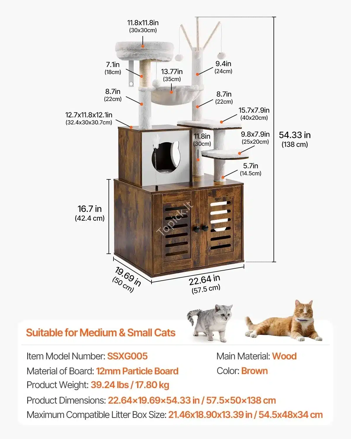 🐾 Daugiafunkcis kačių draskyklės medis – 575 × 500 × 1380 mm