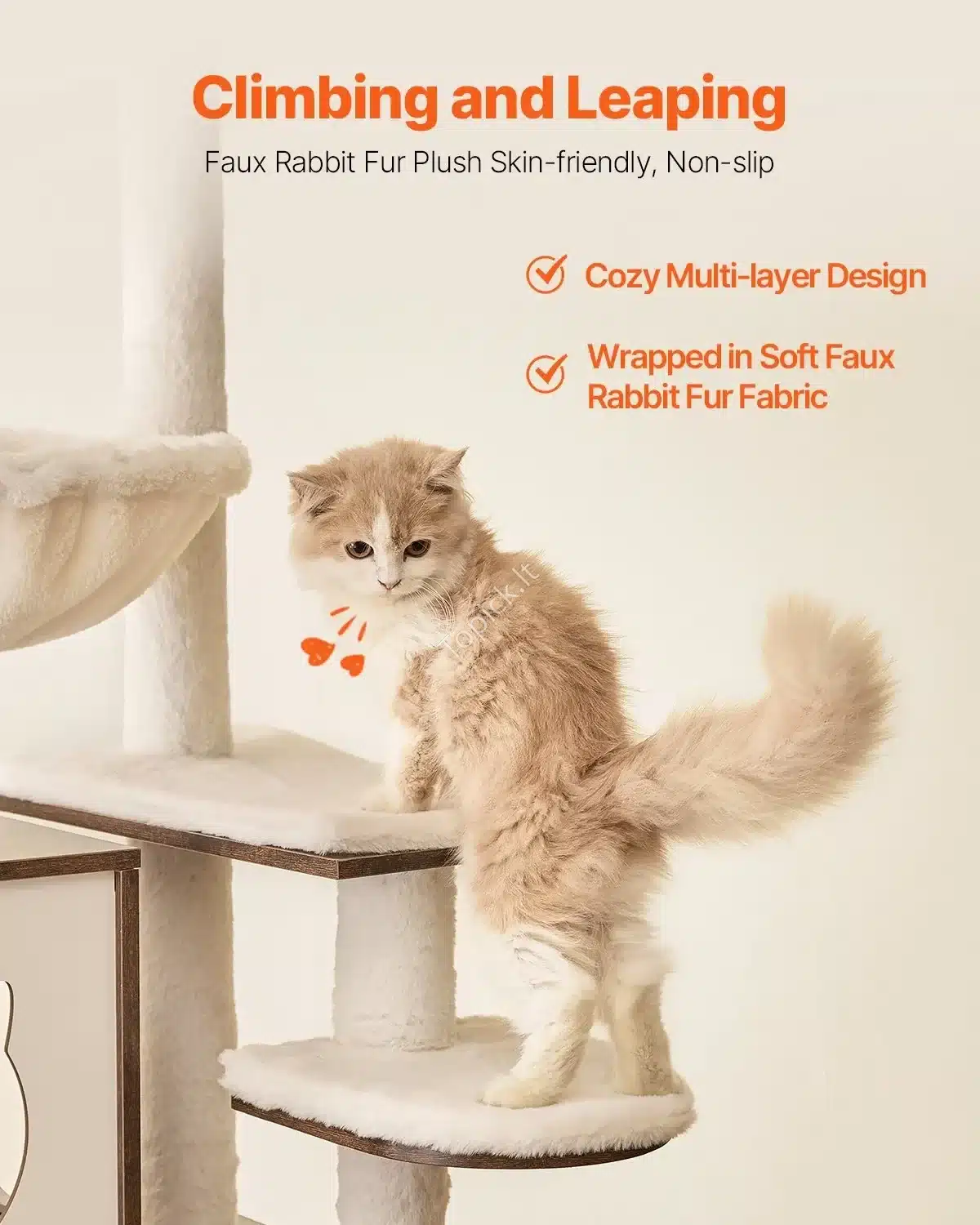 Stulpai aptraukti natūraliu sisalu – skirti nagų galandimui, o minkšti aukštai ir namelis suteikia jaukią vietą poilsiui.